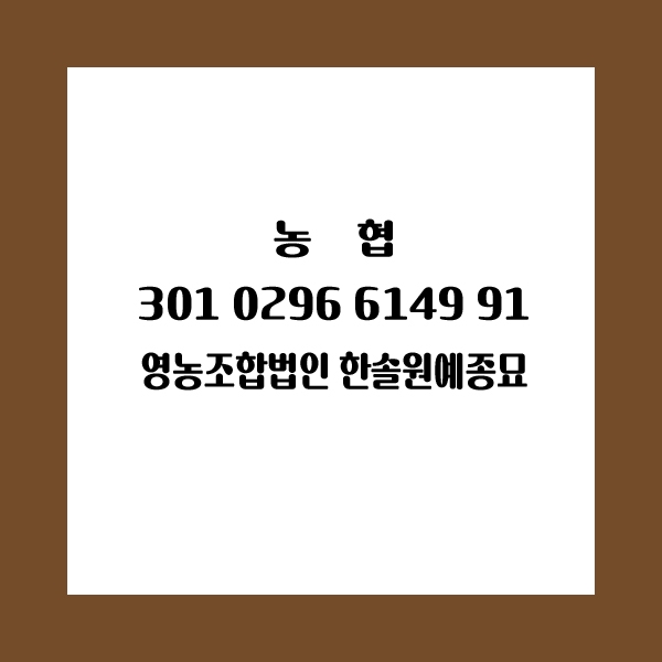 | 계좌정보 | 농협: 한솔원예종묘 계좌: 301-0296-6149-91 |
